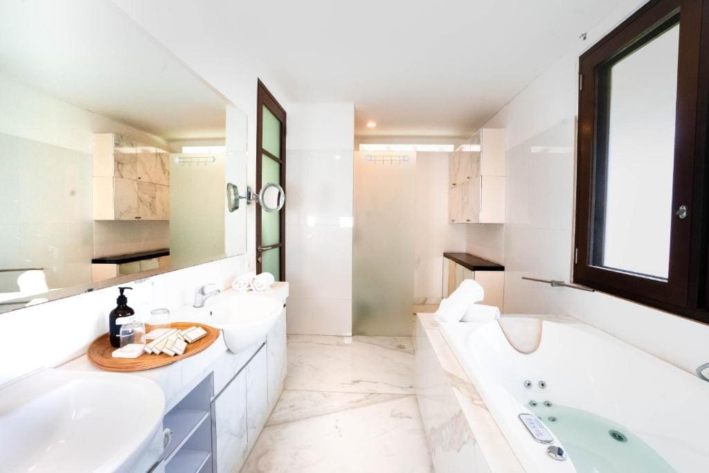 Each of the four bedrooms comes with its own en-suite bathroom. The master suite features a bathtub for ultimate relaxation, while other bedrooms offer private corners and even a mini kitchen—ideal for families or groups.