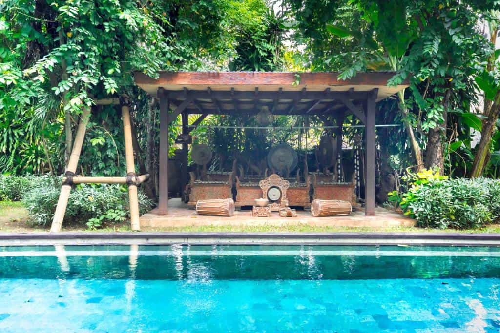 Unique to Asraya Villa is a gamelan corner, where you can enjoy an authentic touch of Balinese culture. Outside, unwind on sun loungers, dine al fresco, or simply soak up the tropical vibe by the pool.