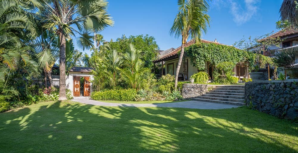 Air-conditioned living and dining rooms with sliding glass doors; open-plan kitchens; indoor and outdoor dining; outdoor patios and verandas; thatched balé; home theater room