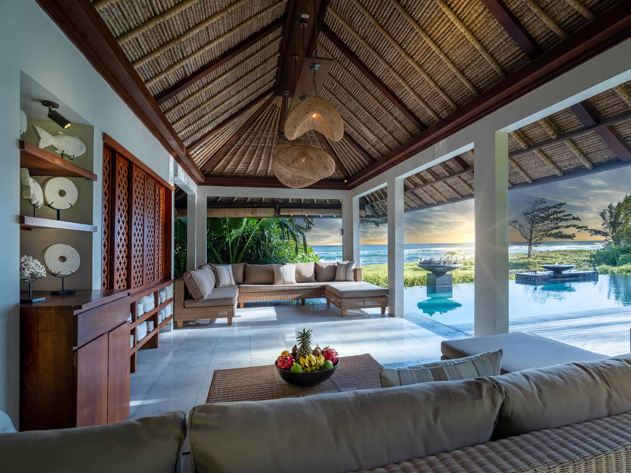 Characterized by stylish contemporary architecture and thatched roofs, Seseh Beach Villas offer plenty of space to relax and unwind. The villas are similarly sized with five king or queen-sized bedrooms apiece (some of these convert into twins), however Seseh Beach Villa II’s additional kids’ bunk room, which doubles up as a playroom, makes it ideal for families traveling together.