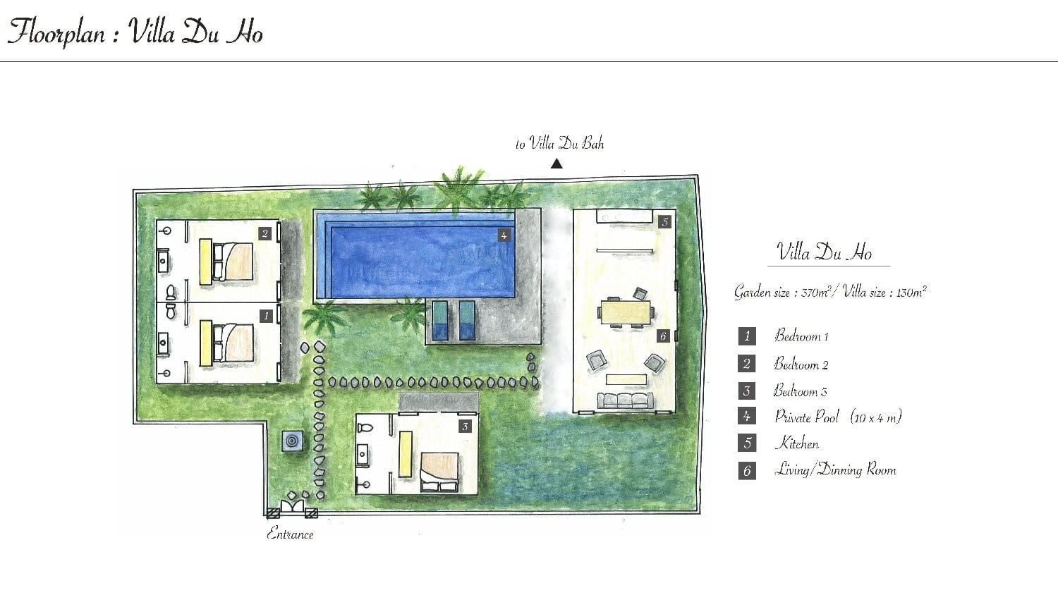 All the 3 cozy rooms at Villa Du Ho have direct access to a 10-meter pool.