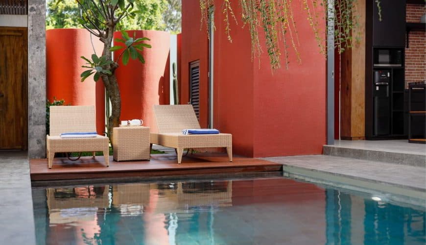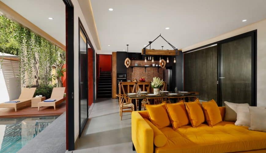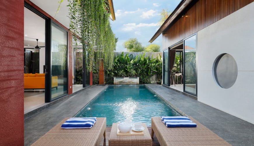Located in the vibrant hub of Canggu, Villa Eliza welcomes you with its sleek design, spacious interiors, and an outdoor swimming pool surrounded by lush greenery. With its clean lines and monochromatic palette, the villa blends modern aesthetics with bold pops of color in the exterior. Finns Beach Club and Berawa Beach are just a short distance away, ensuring endless enjoyment during your Canggu getaway.