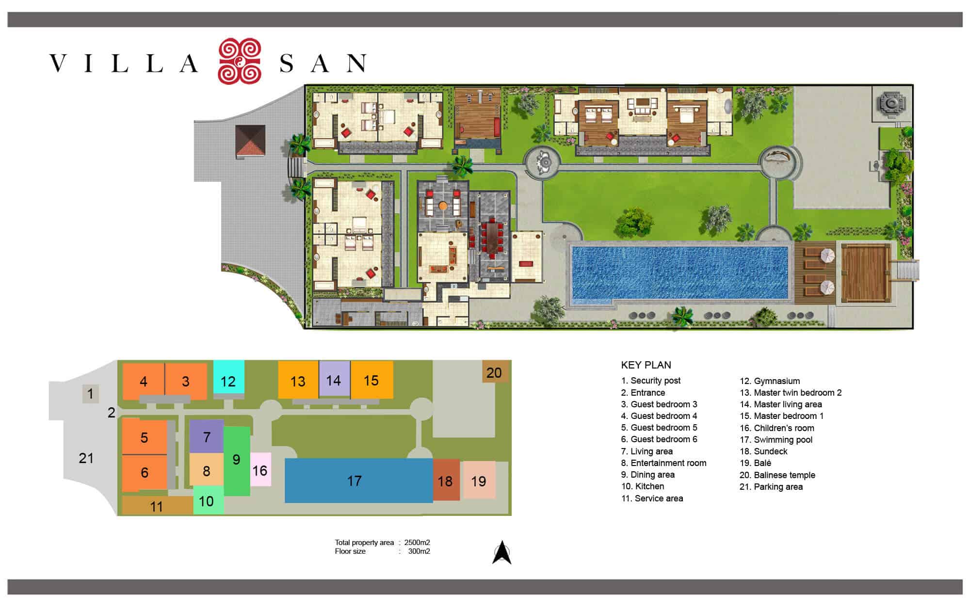 Property Area : 2400 sqm (villa); 3000 sqm (land)