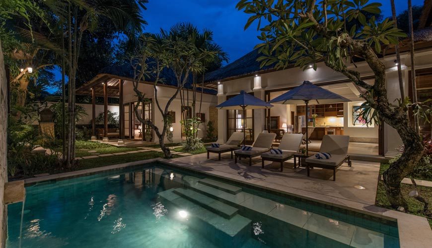 Villa Senada has the perfect blend of tropical charm and modern luxuries. With 4 bedrooms, a lovely tropical garden with a pool, AC in the living room and an excellent location close to the beach and the famous Jimbaran “seafood” Bay, Villa Senada makes a wonderful island stay for families and friends who want to have a true ‘home’ in the south of Bali. The value for money is great at this 4-bedroom luxury villa in Jimbaran. A great find!