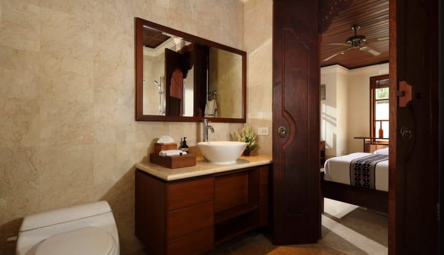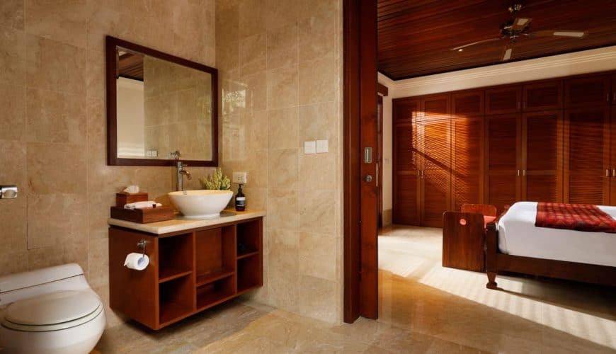 The wooden-timber dominant interior design gives way to a cool ambience, well contrasted by giant glass doors and windows letting in plenty of sunrays and fresh air at all times. All bathrooms are equipped with luxury-resort-style amenities.