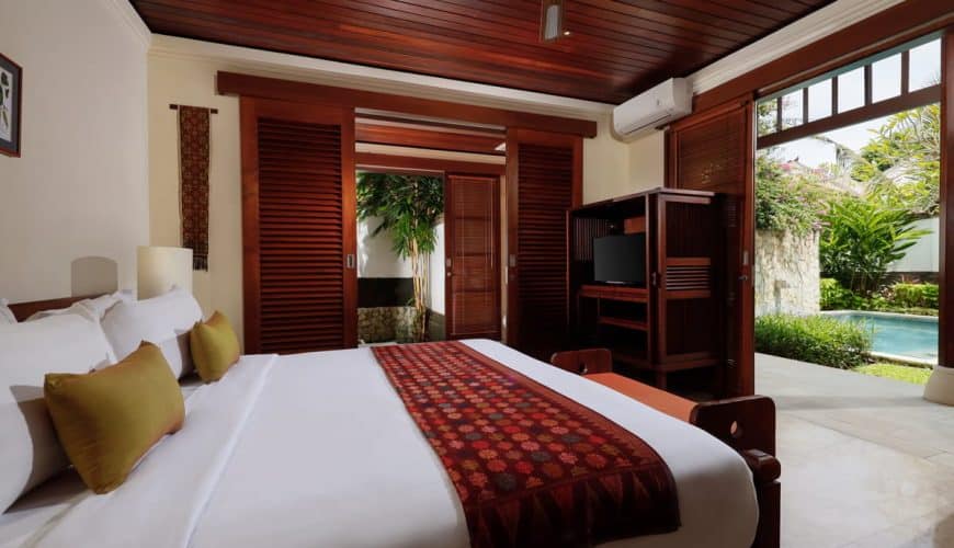Completing an idyllic villa living experience is the outdoor pool in the center of the garden courtyard. Tucked behind a gated compound, your security and total privacy staying in Villa Shanti are guaranteed at all times. With the famous stretch of white sand that is Jimbaran beach only five-minute walk away, Villa Shanti promises to be an unforgettable Bali family escapade.
