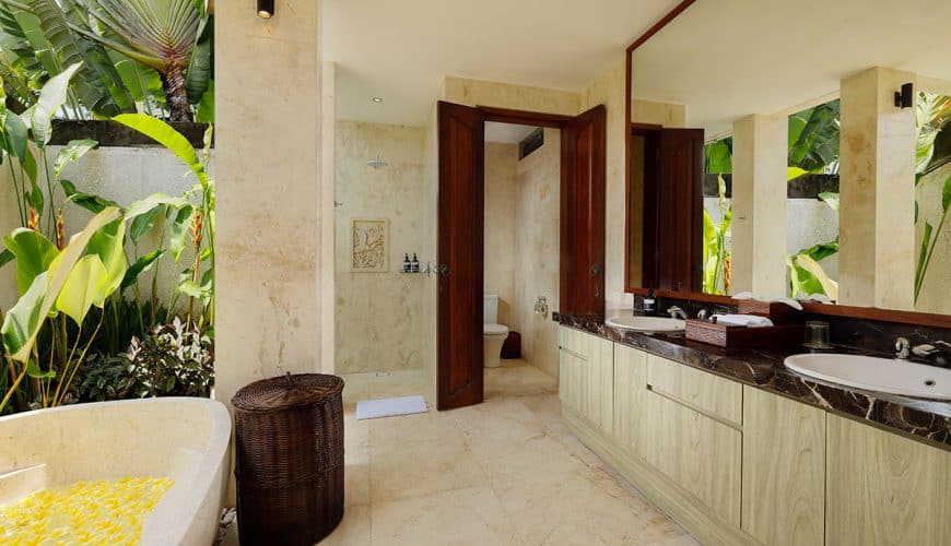 Set in 930 square meters of lush tropical gardens, this luxurious villa is impressive and opulent. It has a 15-meter swimming pool, a large Jacuzzi with a table for snacks and refreshing drinks, an outdoor dining pavilion with daybeds and a big flat-screen TV, and an imported Australian gas barbeque.
