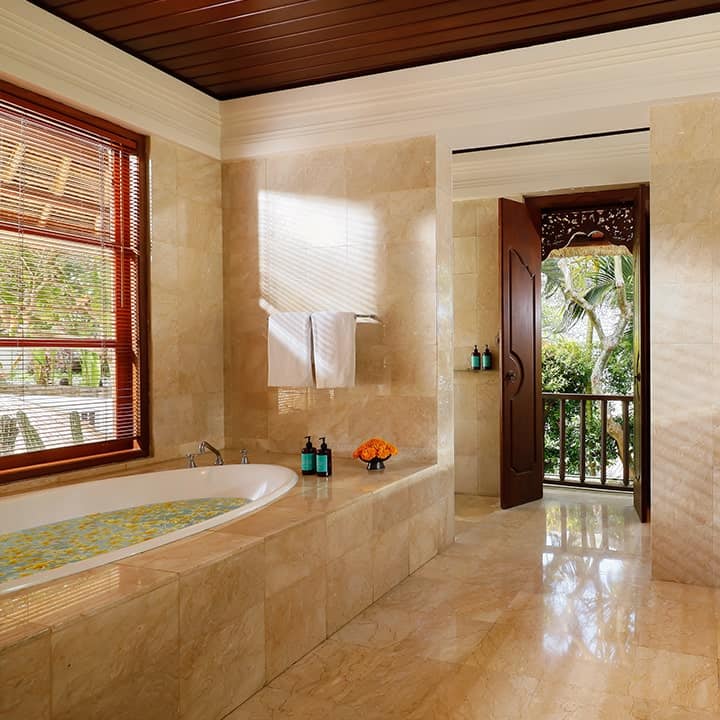All bathrooms are equipped with luxury-resort-style amenities.