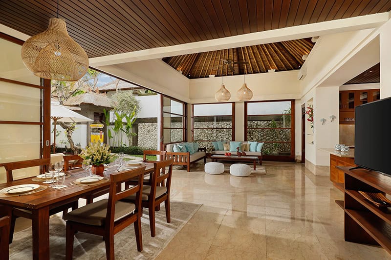 Ensconced in the lushest part of Jimbaran, Villa The Seven exudes effortless luxury perfect for the family island getaway. A mere five-minute walk from the iconic Jimbaran beach, this tropical villa showcases a perfect blend of traditional Balinese architecture with modern sensibilities.