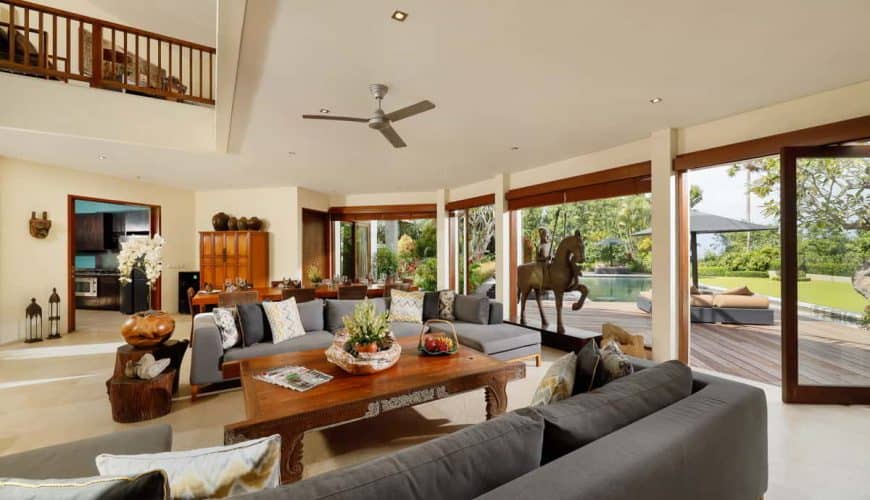 Step into the sleek, open-plan living space that forms the heart of Uma Nina. Muted stones and creams coordinate with Balinese antiques, carved wood and plump sofas, surrounding you with comfort