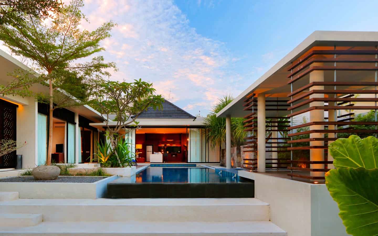 Welcomed by the serenity of the pool garden, the L-shape layout consists of one two-storey structure on one side with two adjacent single storeys on the other.